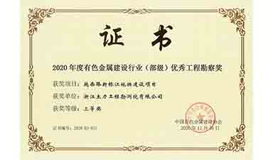 2020年有色金屬行業(yè)部級(jí)優(yōu)秀工程勘察獎(jiǎng)